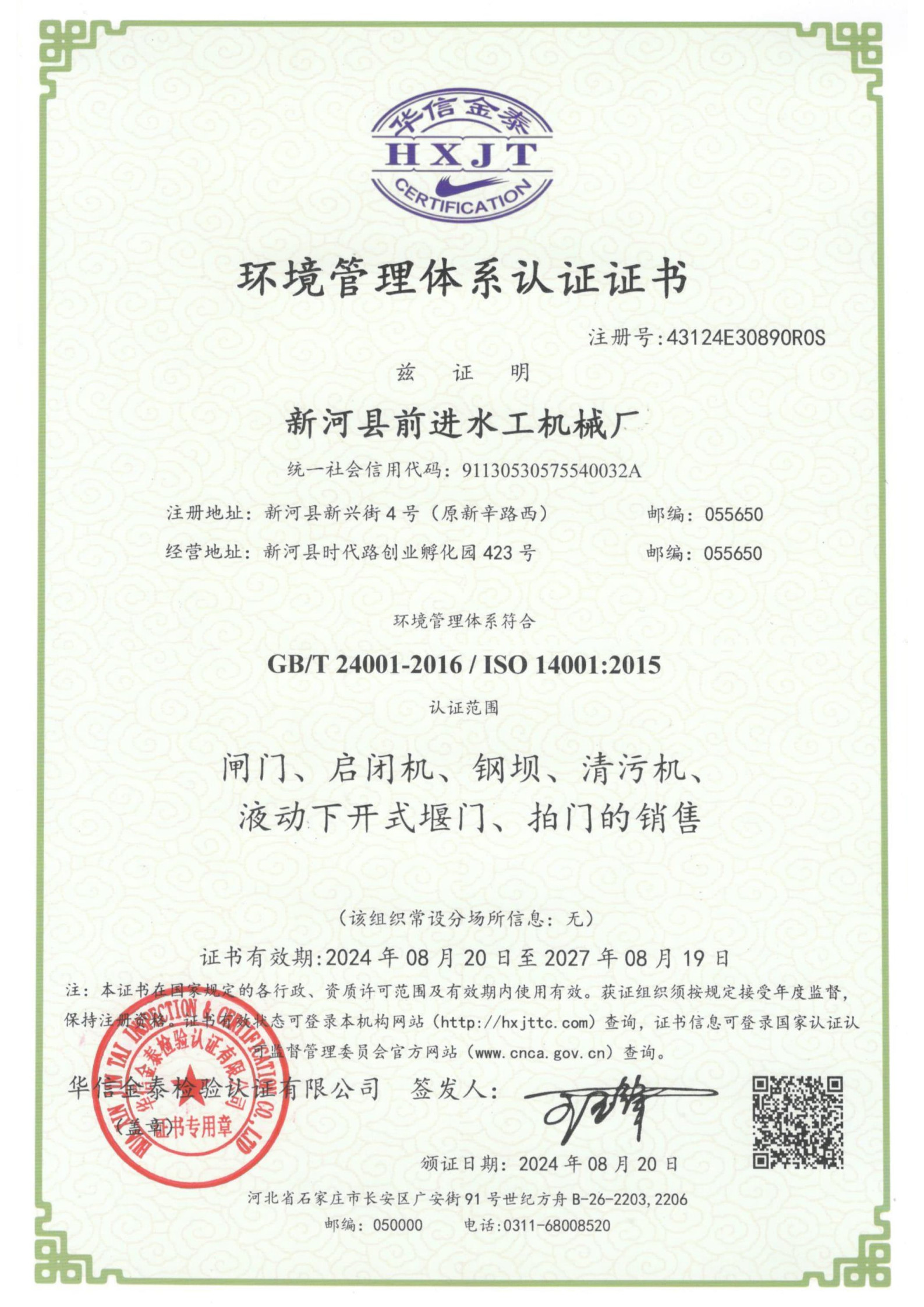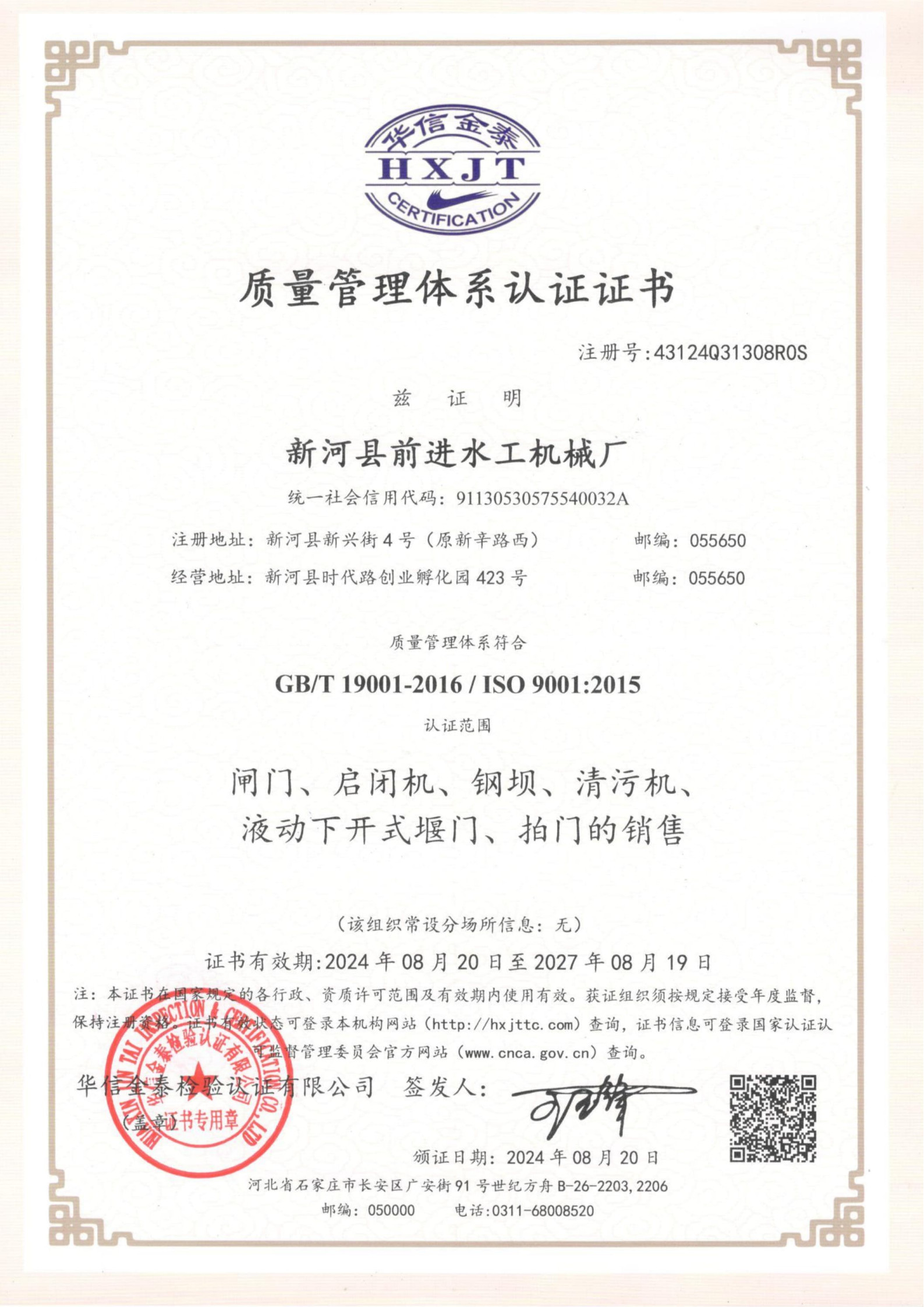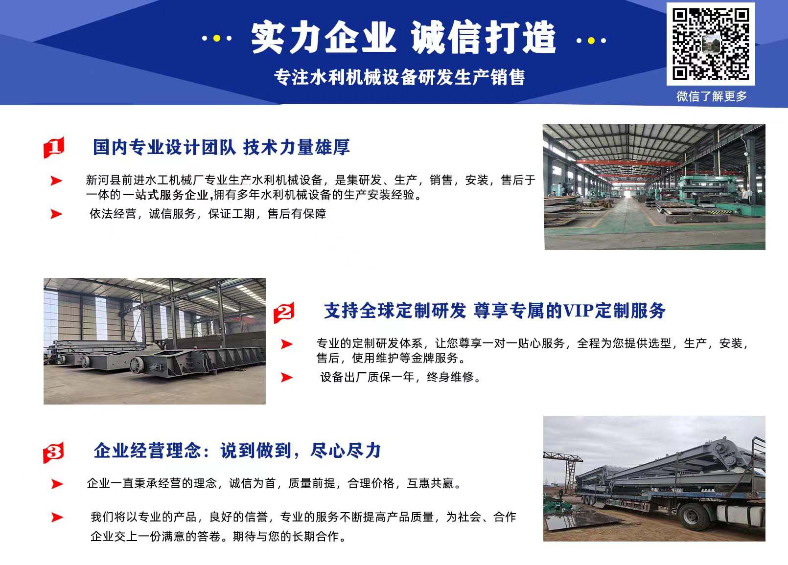新河縣前進(jìn)水工機(jī)械廠是一家專門從事水利工程設(shè)備研發(fā)生產(chǎn)的廠家,現(xiàn)有員工228人,各類高、中級專業(yè)工程技術(shù)人員近30人,技術(shù)生產(chǎn)工人180多人。公司占地面積14674平方米。公司擁有車、鉗、刨、銑、冷作、鈑金、鑄造等,工種齊全,加工能力和技術(shù)力量雄厚,并具備理化測試手段與儀器設(shè)備。前進(jìn)水工專注景觀閘門,鋼壩,合頁壩,液壓升降壩,液壓閘門,臥倒門,一字門,人字門,液壓啟閉機(jī),卷揚啟閉機(jī),螺桿啟閉機(jī),清污機(jī),除污機(jī),閘門,拍門等設(shè)備的研發(fā)與生產(chǎn),是新河水利工程產(chǎn)品行業(yè)的領(lǐng)跑者,不僅在同行業(yè)群中揭起了一次又一次的技術(shù)革新,更為水利工程企業(yè)提供了更高更大的選擇平臺。